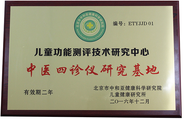 2016年12月28日,北京市中和亞健康科學(xué)研究院兒童健康研究所,正式授牌蕪湖圣美孚科技有限公司為兒童功能測(cè)評(píng)技術(shù)研究中心、中醫(yī)四診儀研究基地。