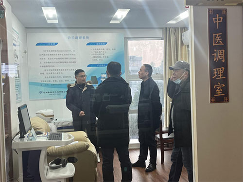 隨后章主任一行來到我司中醫(yī)調(diào)理室,并饒有興致的聽取工作人員介紹中醫(yī)調(diào)理室的成立背景、各模塊組成及工作原理、項(xiàng)目實(shí)施及落地情況,在工作人員演示完中醫(yī)音樂調(diào)理系統(tǒng)之后,對公司將中醫(yī)理論與人工智能融合表示高度贊賞,并鼓勵企業(yè)加大宣傳推廣力度。
